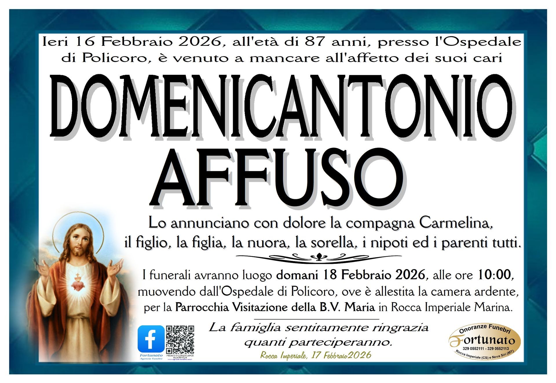 Ti ringraziamo per il pensiero. Lo consegneremo al più presto alla famiglia